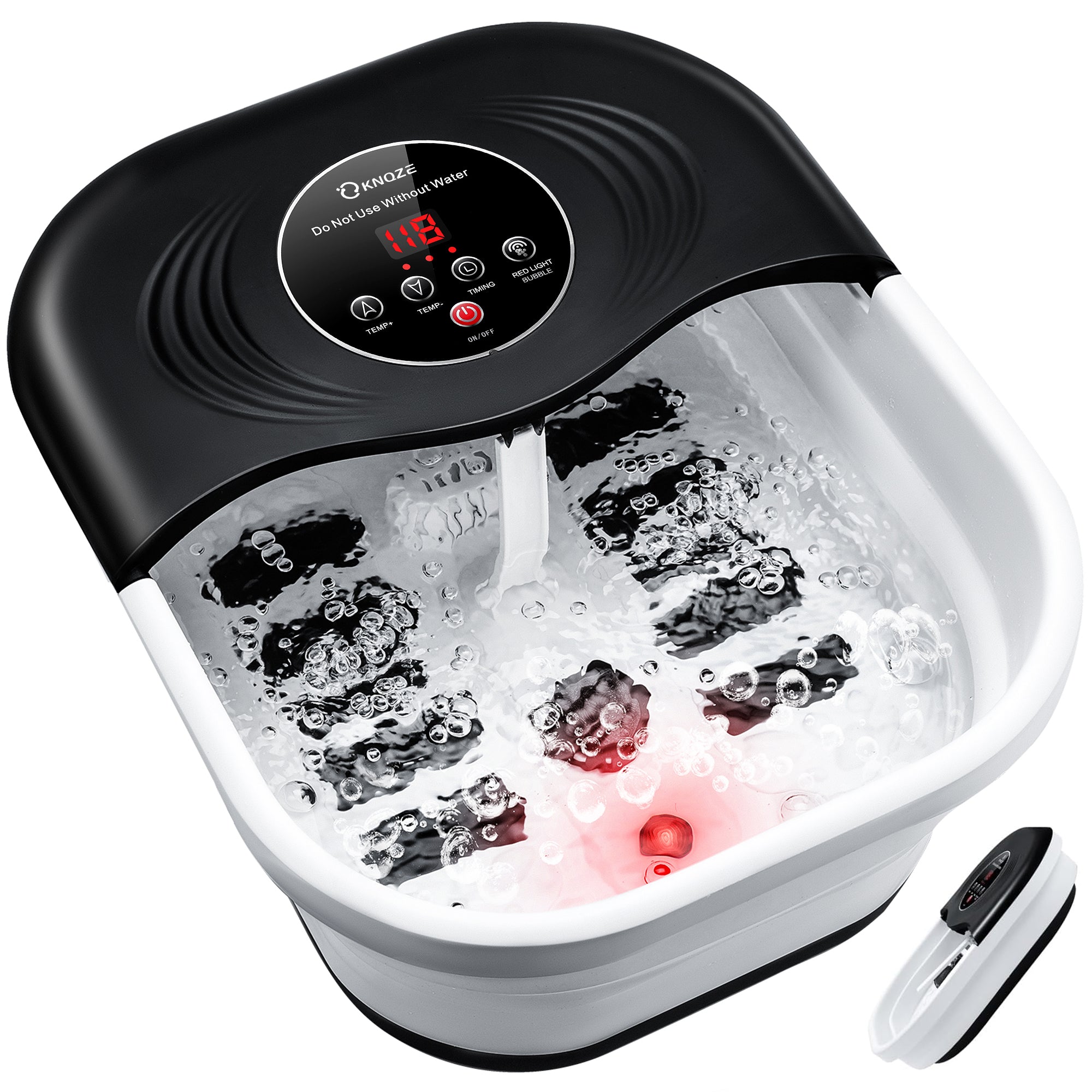 KNQZE Collapsible Foot Spa with Heat and Massage Rollers, Bubble, Red Light & Temp Control, Foot Care Soaker Tub for Home Use